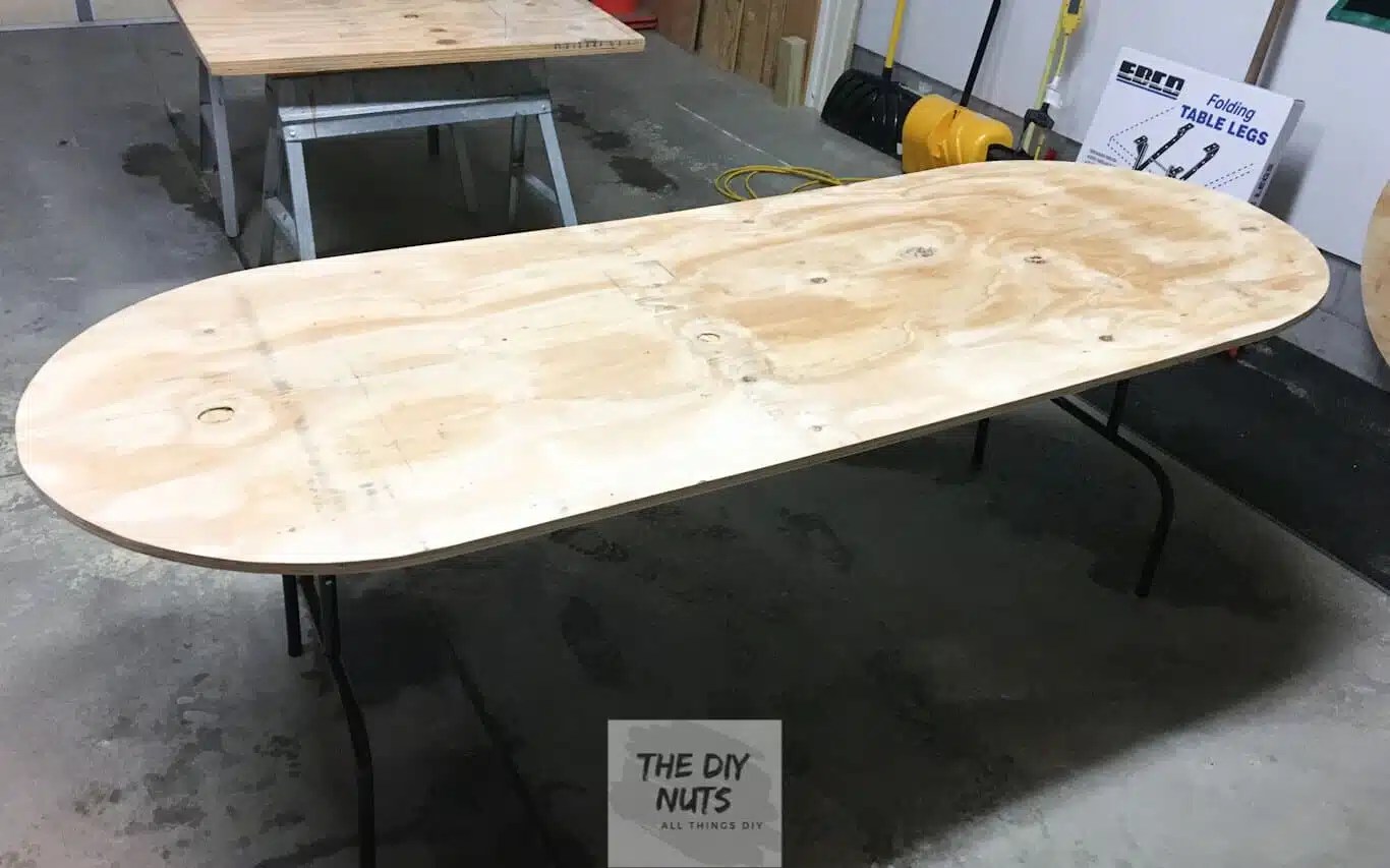 Hi, i saw a pic of this table and fell in love…so i purchased birch plywood to go over the top of my current table…(ikea.which has proven to be very fragile with daily use from 9 kids) i love the birch look…but i've read that it is almost impossible to get a stain/sealer to go on smooth without blotches. This will close off all the wood pores before painting. I chose black paint and primer mix to create industrial look to the dining table. I also have a sheet of 1/2″ plastic that will be used for the trunnions. For example, the walnut i am using isn't quite 3/4″ thick.